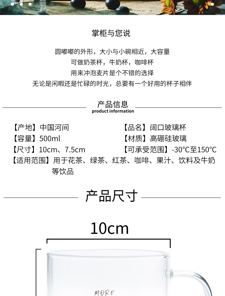 创意字母耐高温玻璃杯子大号带把马克杯办公室茶杯甜品杯早餐杯