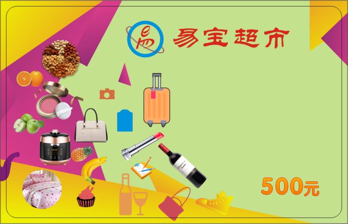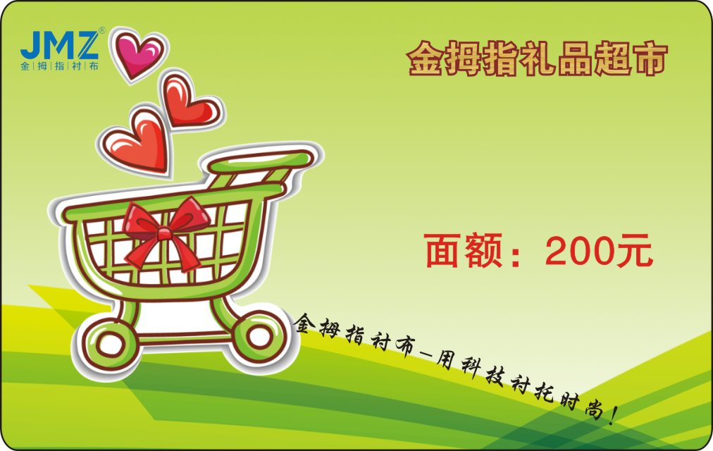 超市卡换购实体卡面额50元*20张=1000元(类似超市卡,可定制)